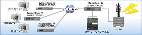 複数のカメラからの映像をMNB9300DECに配信することができます。IPアドレスを指定することで、どのカメラの映像を再生するかを切り替えられますので、監視に使用できます。