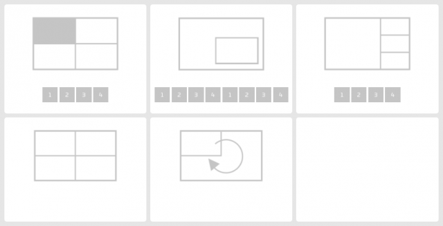 4 チャンネルの映像ソースを使用して、もう1チャンネル「PGM」と呼ばれるマルチモードを搭載。 「フルスクリーン」「クアッドビュー」「ピクチャバイピクチャ」「ピクチャインピクチャ」「ループ」の 5 タイプの映像を利用することができます。