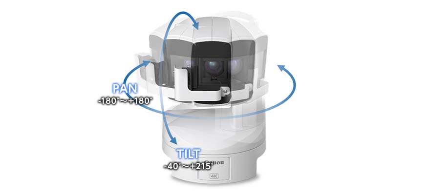 高速から低速まで多段階の速度変化が可能な高精度なPT(パン/チルト)駆動機構とズームを連動させた「スムーズPTZ」を搭載。
